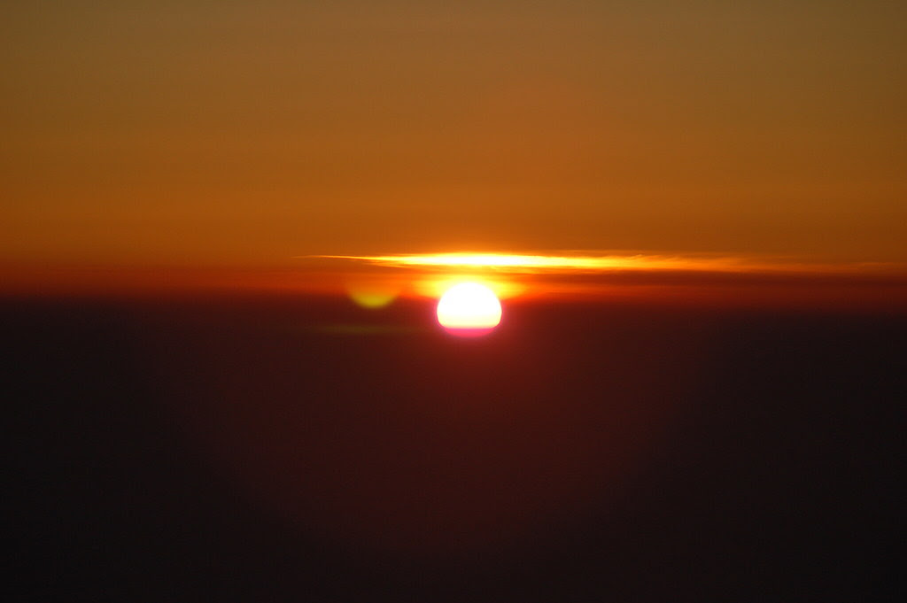 The moment the sun was fully risen, someone yelled something in Japanese and the whole crowd responded by cheering Bonzai!!! Bonzai!!!! Bonzai!!! At the top of their lungs. Hearing more than 5,000 people (maybe even 10,000 counting the people below us on the mountain) cheer all at once like that was amazing. I had no idea it would happen, but I did get a photo of the third Bonzai!!!!!: